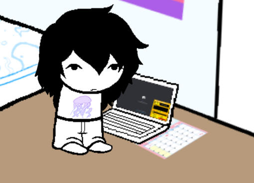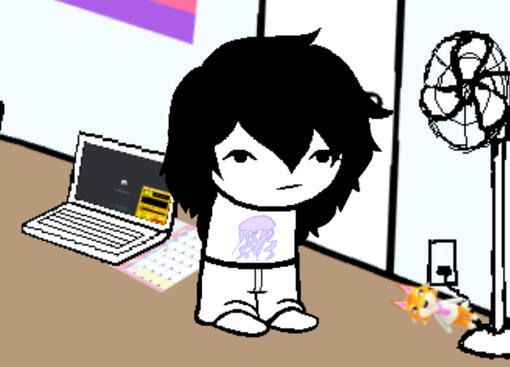 A young fellow stands in their bedroom.Today is a pretty uneventful day, besides the fact it is the young fellow's birthday.It's April 10th, 2009 and they're ALREADY 15!Oh, if only they knew their own name...